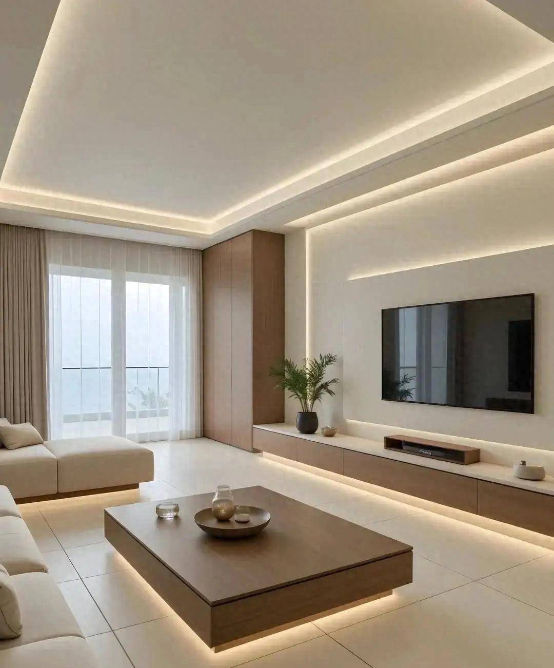 除了配色,灯光也很关键,别只用惨白的吸顶灯,搭配3000K的暖光灯带,能让颜色的质感发挥到极致。