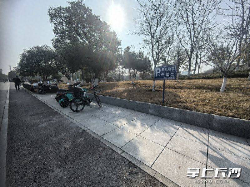 针对市民游园停车难、入园堵的问题,天心区园林绿化维护中心还坚持疏堵结合、服务为先,优化公园外围配套服务。在公园周边科学规划并增设非机动车停放区域,对原有停放点进行扩容升级,通过合理布局提升空间利用率,实现市民入园“车有其位”;在周边道路、公园入口增设指引标识,清晰标注停放区域位置及步行入园路线,市民有序停放车辆后,步行几分钟即可入园。