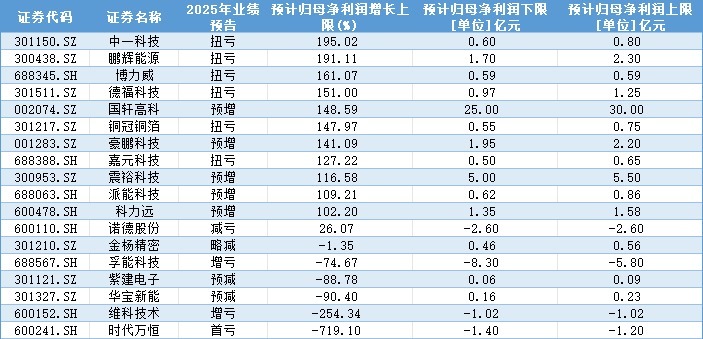 头部企业的业绩表现较为突出。国轩高科预计2025年度实现归母净利润25亿元至30亿元,同比增长107.16%至148.59%;扣非后净利润3.5亿元至4.5亿元,同比增长33.31%至71.40%。业绩预告指出,其业绩增长主要得益于新能源汽车及储能市场需求的快速增长,新一代高能量密度磷酸铁锂电池产品销量同比大幅提升。