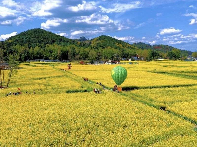 “粮油贷”客户种植的油菜花田游人如织。工行成都分行供图