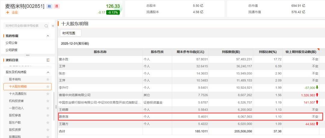 值得注意的是,2025年三季度末,葛卫东亲属葛贵莲便已经新进成为麦格米特第九大股东,截至2025年末,葛贵莲持有麦格米特606.76万股,持股市值达5.47亿元,足见葛卫东对该公司的高度关注。