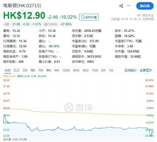 3月6日配资安全证券配资门户,埃斯顿H股(HK:02715)正式在港交所上市,早盘平开报15.36港元,随后迅速破发,收盘报12.9港元,跌幅达16.02%。